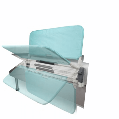 Esta barandilla proporciona una gran seguridad a las personas que se encuentran en cama evitando que puedan caerse de ella. La barandilla se fija fácilmente entre el somier y el colchón con correas de fijación. Se puede abatir presionando las dos primeras barras, y cuando se levanta se bloquea fácilmente.