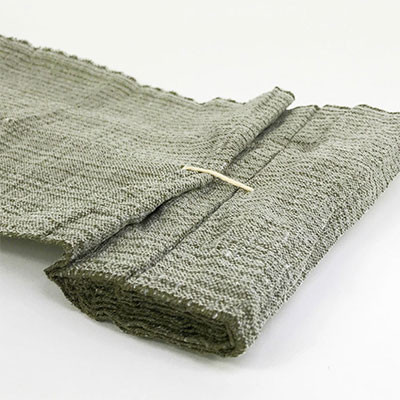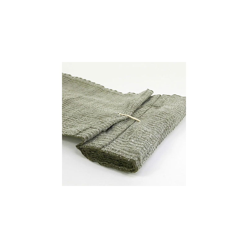 Apósito de 15x23 cm sobre venda de 160 cm (sin tensar). Doble envasado al vacío. Color verde militar