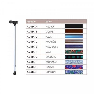 Bastón de aluminio muy ligero y resistente. De altura graduable 77 a 100 cm. con ajuste silenciador que impide el molesto ruido que hacen muchos bastones durante la marcha.